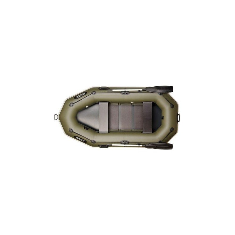 ДВУМЕСТНА ГРЕБНА НАДУВАЕМА ЛОДКА BARK B-260P, ОРЕБРЕНО ДЪНО-ЗЕЛЕНА. Изключително лека, удобна и същевременно много бърза лодка с гребла. Лодката е изключително лесна за транспортиране и може да се побере във всякакъв тип багажник на автомобил. Материалите и шевовете са направени от много здрави материали и издържат на големи натоварвания. Лодките от надуваемата серия на BARK са много подходящи за риболов на спининг, на джиг, плувка, нанасяне на въдици и поставяне на захранка, както и за много други. Цвета на лодките е маслено зелен и лодката се слива по уникален начин с всяка околност и всеки цвят на растителността през топлите месеци. Конструкцията на поставянето на седалката е направената така, че да може да се фиксира здраво и стабилно. Това дава предимство седалката да не се премества. Греблата са  нормални и са възможно най-практичните за такъв модел малка лодка. Лодката е достатъчно комфортна за двама човека.Тази лодка е отлична за риболов в спокйни и малки водоеми. Пълноценна,компактна гребна надуваема лодка за минимална цена. Лодките BARK са едни от най-надеждните, здрави и функционални лодки, с които всеки риболовец ще бъде удовлетворен максимално!