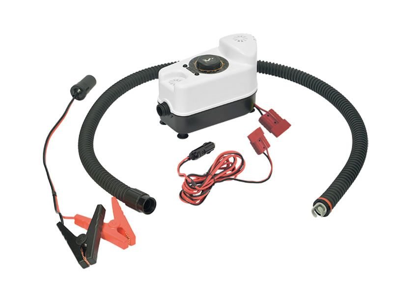 В комплекта са включени накрайник тип Halkey Roberts, който се използва при повечето надуваеми лодки, кайтове и SUP бордове. Тази помпа е изключително подходяща за надуваеми лодки с надуваемо дъно и SUP бордове, като ви осигурява необходимата мощност и производителност за бързо и лесно надуване.