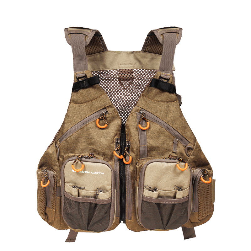 Golden Catch Fishing Vest е снабден с множество джобове и отделения, които предоставят достатъчно място за съхранение на риболовни принадлежности като изкуствени примамки, воблери, куки, плетени влакна, ножове и други необходими аксесоари. Тези джобове са удобно разположени, за да осигурят бърз достъп до необходимите инструменти по време на риболов.